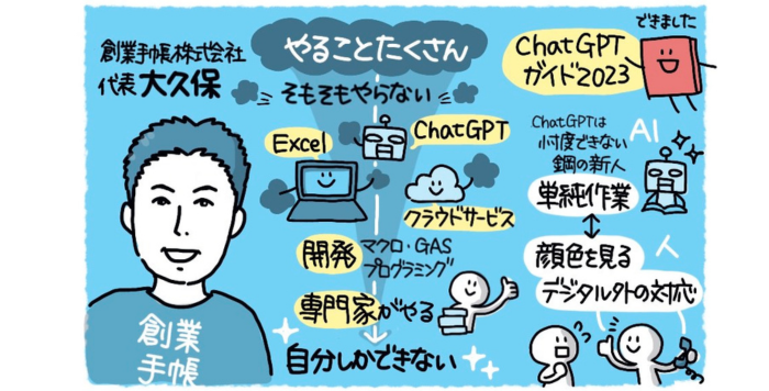 今回の基調講演では、吉田氏がExcelの活用術等を具体例を紹介しながら解説し、続いて創業手帳代表の大久保がChatGPTをビジネスに活かす方法について紹介しました。