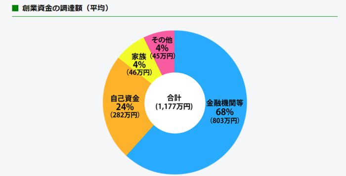 日本政策金融公庫総合研究所の「2023年度新規開業実態調査」によると、創業時に集めた平均資金調達額のうち、自己資金の割合は約23.8%となっています。必要な総資金額の2割以上の自己資金を貯めてから開業に踏み切る人が多いようです。