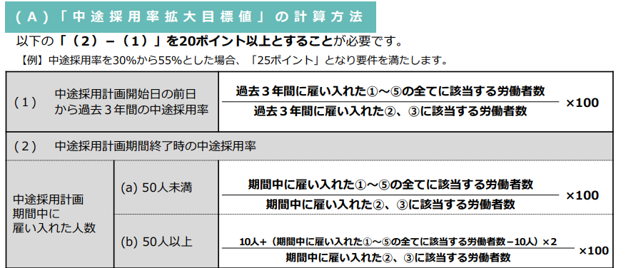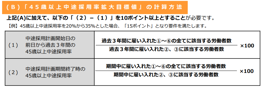 なお、「中途採用率拡大目標値」と「45歳以上中途採用率拡大目標値」は、以下の計算式で算出します。