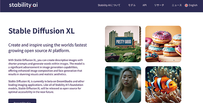 イギリスのスタートアップ企業である「Stability AI」が開発したAIで、「Diffusion Model(訓練済のAIモデル)」を搭載しています。