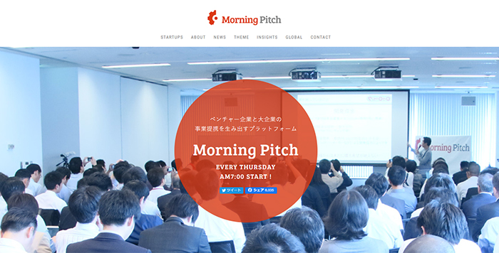Morning Pitch(モーニングピッチ)」は、ベンチャーと大手企業をつなぐこととそのプラットフォームをつくることを使命としています。5社のベンチャー企業によるピッチイベントで、大企業などのオーディエンスは約200〜300名にのぼる規模です。これまでに2,350社以上が登壇しています。