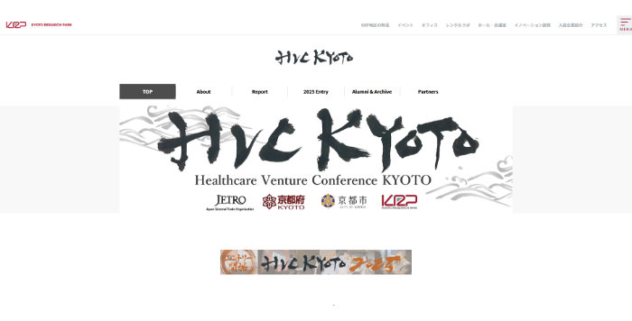 Healthcare Venture Conference KYOTO (HVC)は、独立行政法人日本貿易振興機構(JETRO)・京都府・京都市・京都リサーチパーク株式会社が主催するイベントです。ヘルスケア領域のスタートアップが多数集まり、英語によるビジネスピッチの開催があります。