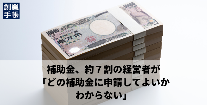 補助金、約7割の経営者が「どの補助金に申請してよいかわからない」。経営者のリアルな声を聞いた。