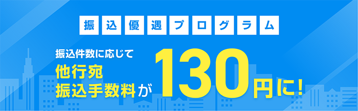 振込件数に応じて振込手数料が優遇される 「振込優遇プログラム」で、他の金融機関(他行)宛て振込手数料が最安130円(税込)に。