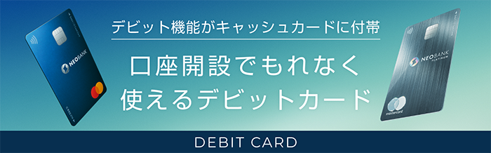 預金残高の範囲内で支払いができる「デビットカード」が、口座開設をするとついてきます。