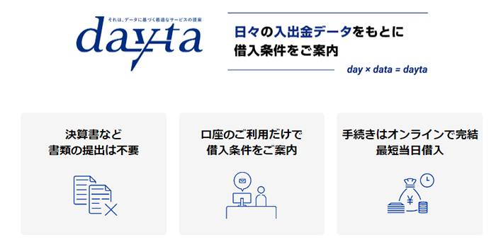 その5:口座を利用するだけで事業性融資dayta(デイタ)の借入条件を案内してくれる