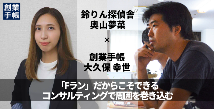 創業手帳代表の大久保が、代表取締役の奥山氏に、立ち上げの経緯や事業内容、「Fラン」ならではのブランディングについてなど、お話を聞かせていただきました。