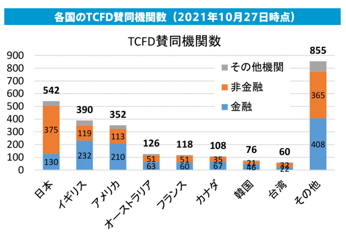 TCFDコンソーシアムによると、2021年10月27日時点の日本のTCFD賛同数は542と世界トップです。