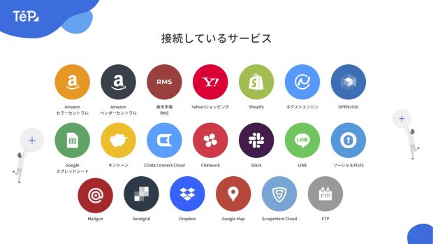 TēPsが接続しているサービス一覧。Amazonや楽天からLINE、Googleなど多岐に渡る