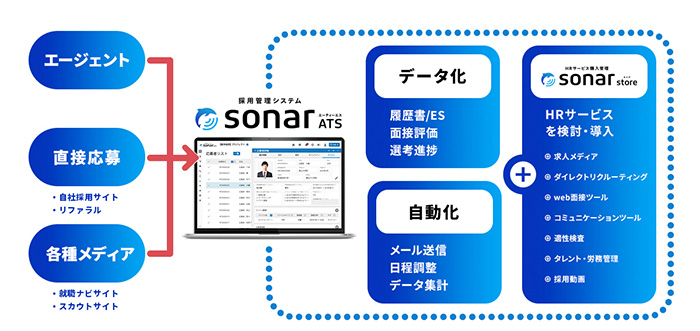 採用管理システム「sonar ATS」、HRサービス購入管理「sonar store」で企業をサポート