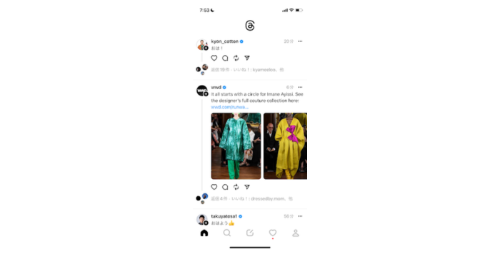 Twitterは短文に制限して投稿をライトに、シンプルにしているのが強みであり、弱みですが、threadsは文字と写真をややリッチにしています。
