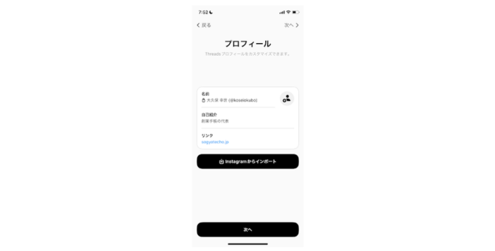 次にプロフィールを設定します。インスタグラムのプロフィールをそのまま使用することも可能です。