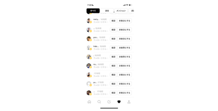 ・タイムラインに表示されるのはオススメの投稿のみであり、自分のフォロワーの投稿は表示が積極的にされるわけではないようです。