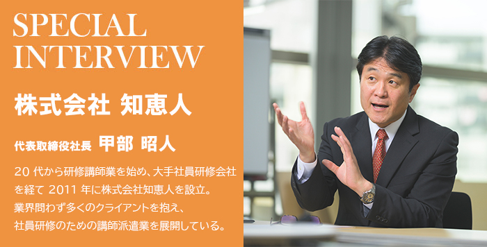 甲部:研修会社の一員として講師をする中で、「甲部さんの研修に参加して上司の言っている意味が良く分かった」「甲部さんの話を聞くと元気になる」「やる気になる」「甲部さんの研修は寝る人がいない」といったお声をいただいていました。そのようなお声を聞きながら、自分が大切にしていることは何だろうと考えた結果、自分の想いを会社名に込めることにしたのです。これからの時代の人材育成は「知恵の創造」がキーワードになると確信していたので、知恵人創りというコンセプトから考えた「知恵人」という社名に一切の迷いはありませんでした。