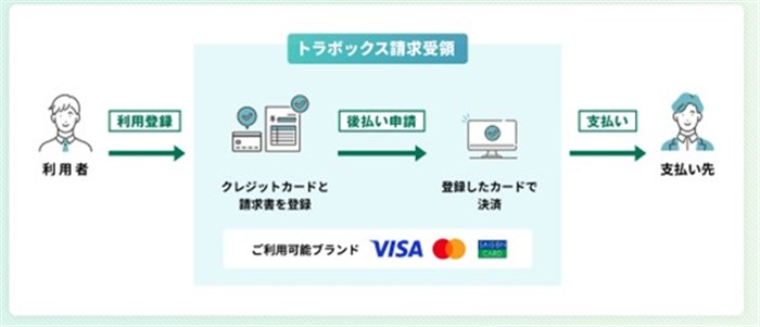 トラボックスの請求書後払いは、トラボックスに使用するクレジットカードを事前に登録しておけば、請求書とクレジットカードを用意するだけで簡単に利用できます。