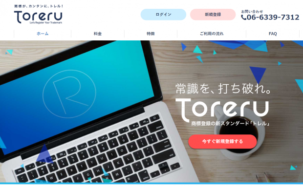 「Toreru」はクラウド上で商標登録がカンタンに安くできるサービスです。