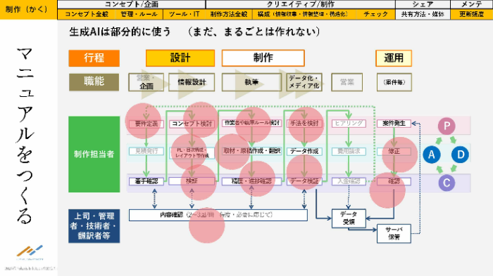 工程管理の秘訣は、毎日5分でも進行具合を確認することと、「自分がマニュアルづくりの担当者だと自信を持つ」ことですね。