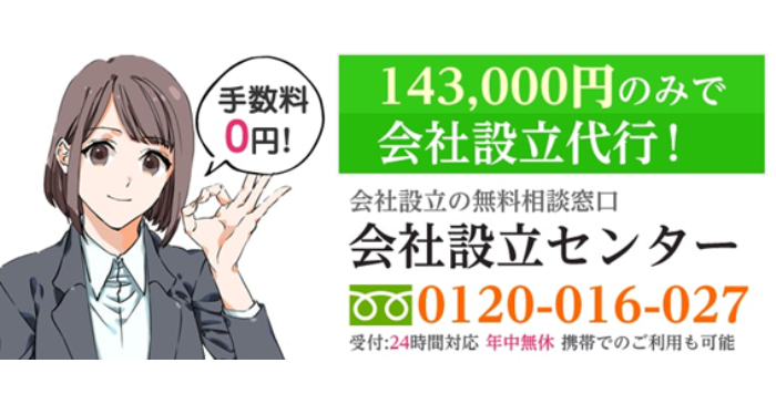 手数料ゼロ円でサポート充実の会社設立代行が魅力の会社設立センター