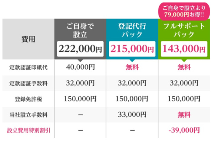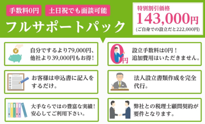 顧問契約とセットのフルサポートパックで設立費用を79,000円圧縮