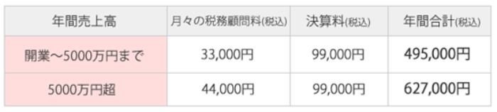 フルサポートパックではその後の辻・本郷税理士法人との顧問契約が必要となります。顧問契約の費用は次の通りです。