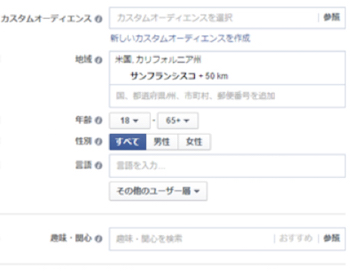 編集ページにて見出しやテキストの入力、画像を追加したあと、地域・年齢・性別・趣味・関心など、必要な項目に入力し、ターゲティングの設定をします。