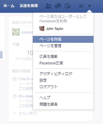右上の▼マークをクリックし「ページを作成」を選びます。