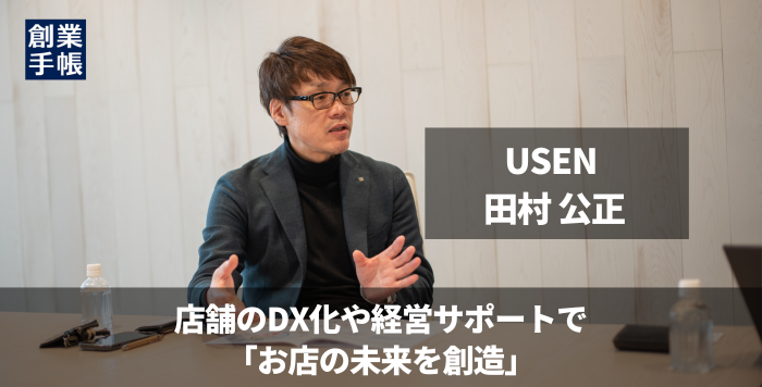 そこで今回は、田村さんが社員からUSEN(USEN-NEXT GROUP)の社長に就任するまでの経緯や、現在USENが提供している飲食店へ向けた様々なサポートについて、創業手帳の大久保が聞きました。