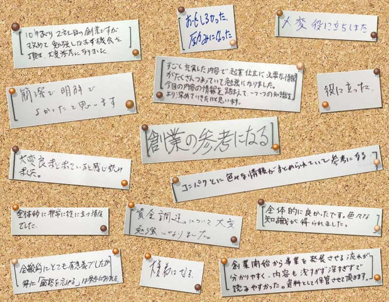 全国の金融機関や官公庁や士業・インキュベーション施設など創業支援業界で多く利用されており、取材や、実際に体験した記事だけでなく、起業家からの膨大な相談を元に生きたリアルタイムの創業ノウハウを創業手帳に反映し、毎月改訂し続けているのが創業手帳が多くの起業家や専門家に支持されている理由です。