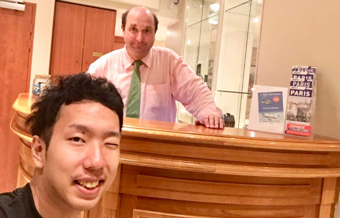 ホテルに戻ると、受付にチェックインの時にも会った優しそうな雰囲気のおじさんが立っていました。本名はドミニク、私はパッと見た雰囲気からピエールと命名し、勝手に心の中で呼んでいました。