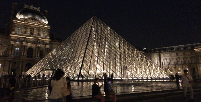 しかしながら、どうしても連れて行きたいらしく、おとなしくピエールに連れられるがまま僕はルーブルに向かいました。夜のルーブルに着くと、前回来たときとは全く違う雰囲気を醸し出していました。