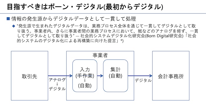 弥生は今後、情報の発生源からデジタルデータにして、一貫して処理できる「ボーン・デジタル(最初からデジタル)」の世界観実現に向けて注力していくことを岡本氏は述べられました。