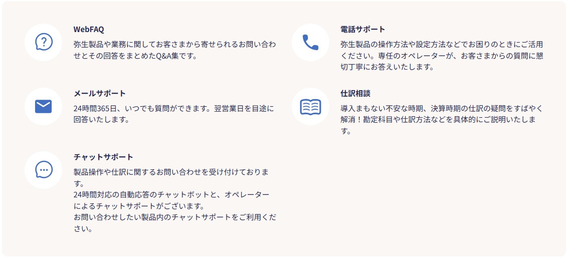 弥生は業界最大級のカスタマーセンターを運営しておりますので、初心者の方からベテランの方まで、しっかりとサポートいたします。参考画像※8