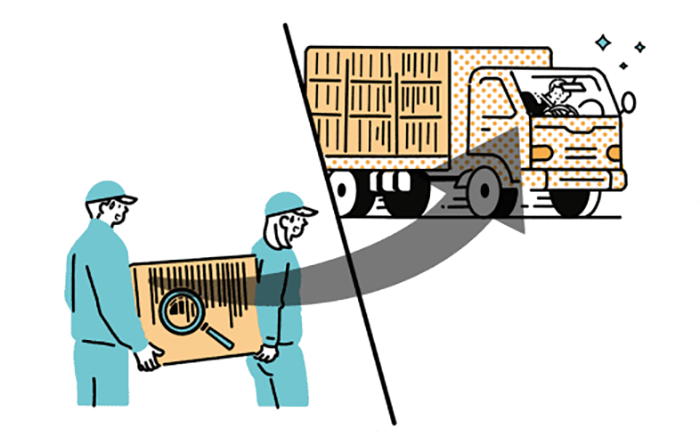 出庫管理では、検品・伝票添付・発送・出庫処理を行い出庫します。