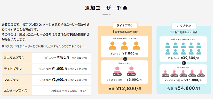 各プランのユーザー数は、必要に応じて増やすことができます。