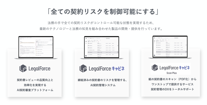 小笠原:現在の技術では、弁護士の仕事をすべてテクノロジーで置き換えることは、ほぼ不可能だと思っています。例えば、株式会社LegalForceが展開する2つのサービスは、どちらも契約書にフォーカスしており、「LegalForce」では、契約依頼の受付から契約書に潜むリスクの洗い出しまでを一気通貫でサポートすることで契約審査実務を強化できますし、「LegalForceキャビネ」では、締結後の適切な契約の管理とリスクマネジメントを強化できます。しかし、提示されたリスクを受け入れるか否かなど、ビジネス上どう意思決定をしていくかは、個別に人が判断していく必要があるんです。